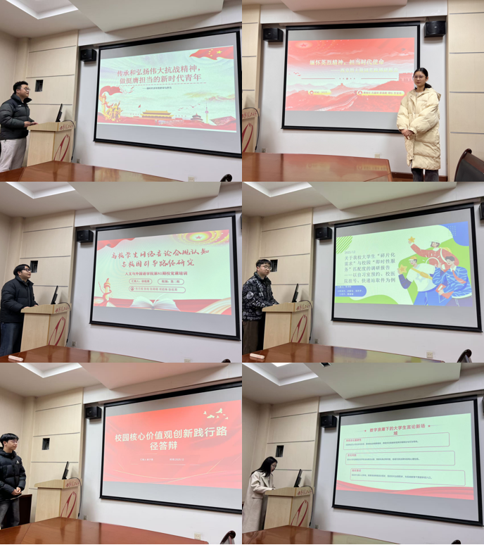答辩会以“青年成长与时代使命”为主题,六个小组依次登台,围绕网络言论生态、红色基因传承、校园服务优化、社会主义核心价值观践行等主题展示调研成果。各小组通过详实的数据分析、生动的案例呈现和清晰的逻辑阐述,充分展现了入党积极分子关注社会热点、服务校园发展的责任意识与实践能力。评委老师从选题意义、调研方法、成果实效等维度进行点评,并提出优化建议。