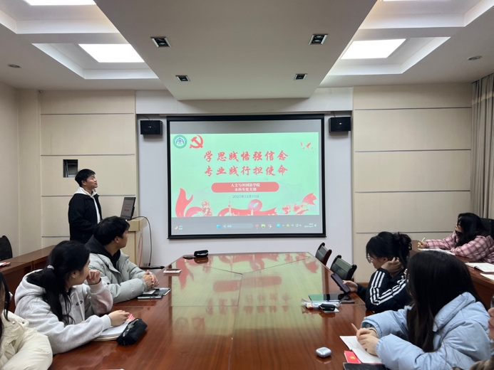 为深入学习贯彻党的二十大及党的二十届四中全会精神,引导支部党员进一步坚定理想信念、提升理论素养、强化使命担当,2025年12月11日晚,人文与外国语学院本科生党支部于教11-201举办“学思践悟强信念,专业践行担使命”主题党日活动。支部全体党员及秋季学期发展对象共同参加。